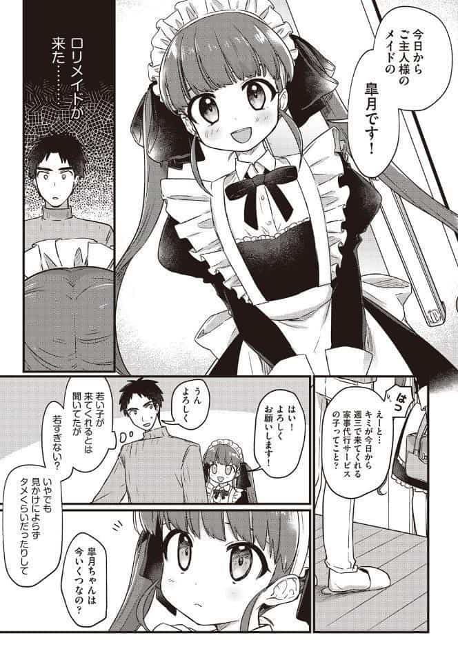 ロリなメイドがご奉仕に来てくれる話がとても素晴らしかったです。ロリな漫画を求めている人は買ってみて損は無いでしょう。