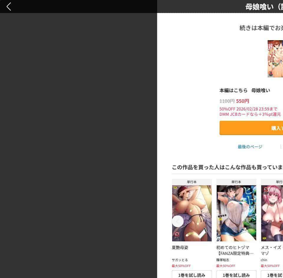結論:FANZAで間違いなし。「昔はDLsiteの方がモザ薄」なんて声もあったけど、今はほぼ同じ画質。それなら大手でセール頻発&使いやすいFANZAが圧勝!今すぐ無料でエロ漫画を読む。