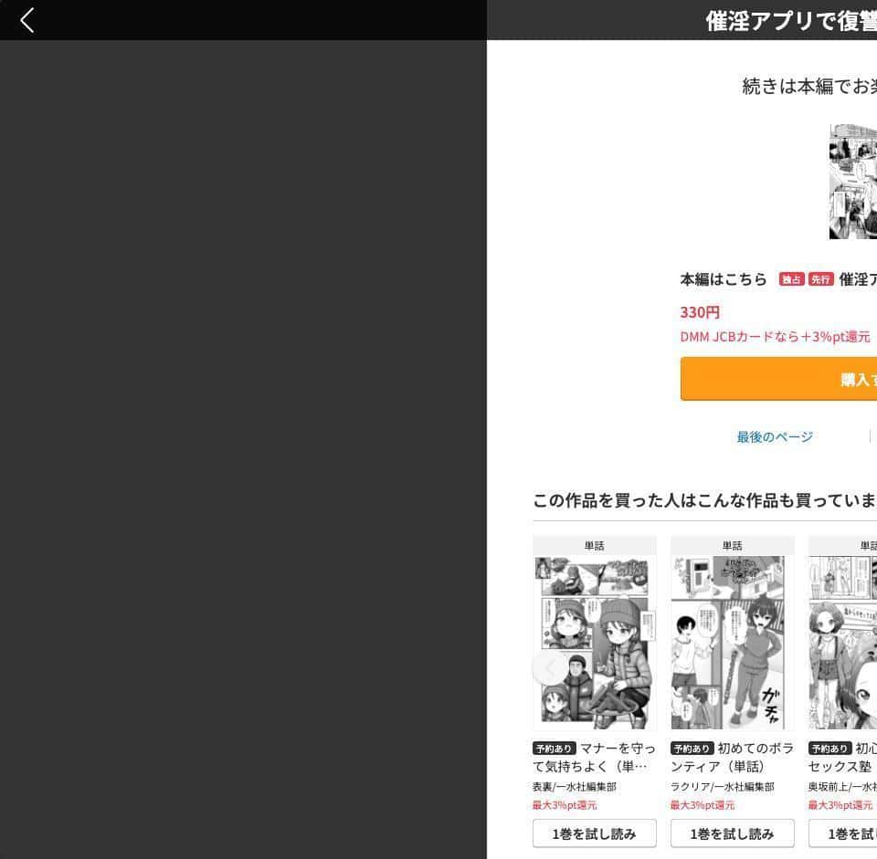 結論:FANZAで間違いなし。「昔はDLsiteの方がモザ薄」なんて声もあったけど、今はほぼ同じ画質。それなら大手でセール頻発&使いやすいFANZAが圧勝!今すぐ無料でエロ漫画を読む。
