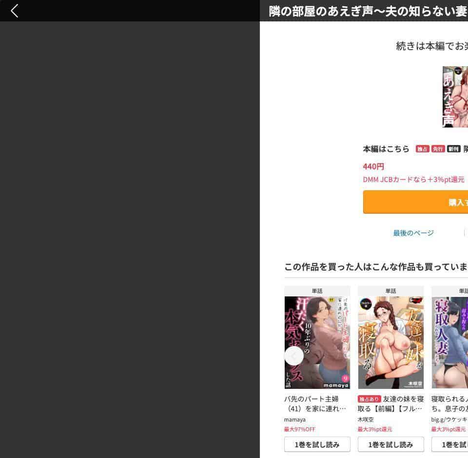 結論:FANZAで間違いなし。「昔はDLsiteの方がモザ薄」なんて声もあったけど、今はほぼ同じ画質。それなら大手でセール頻発&使いやすいFANZAが圧勝!今すぐ無料でエロ漫画を読む。