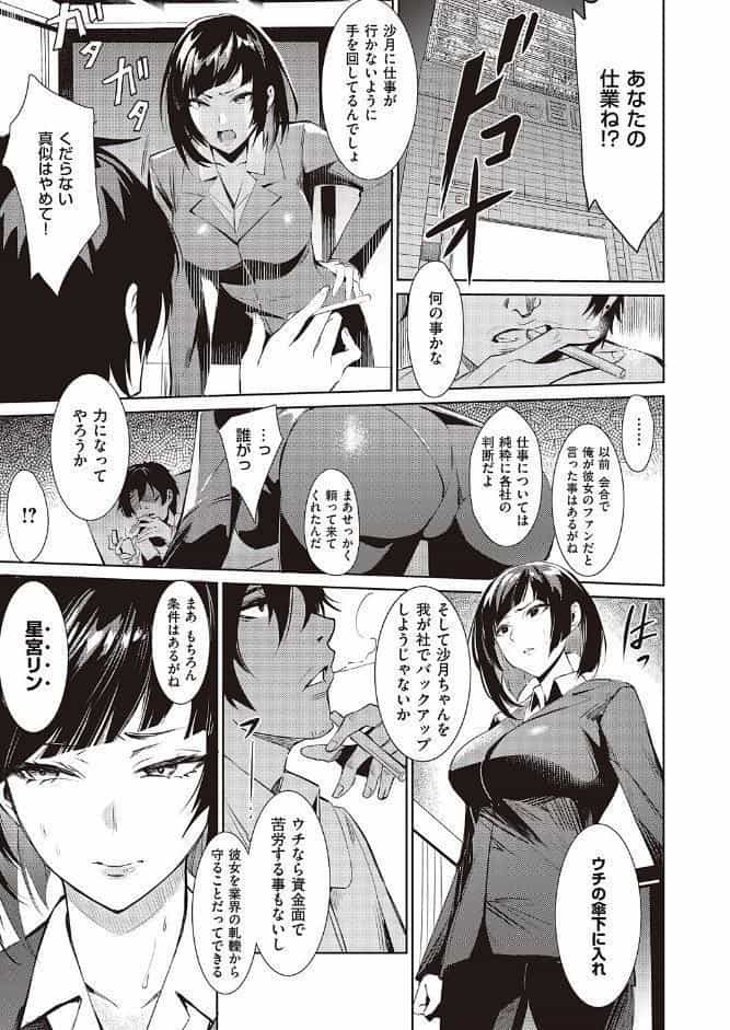 担当アイドルの沙月を輝かせるため、 日夜仕事に励むマネージャーの凛子。 しかし極悪権力者の「手助け」を拒んだ結果、 沙月に仕事が回らなくなってしまう。 凛子は権力者に直談判するが、 彼女にもまた、拭えない過去があった──。 人気急上昇のハイヒールレ●プ・NR先生が熱筆!! 煌めくステージで渦巻く淫欲!
