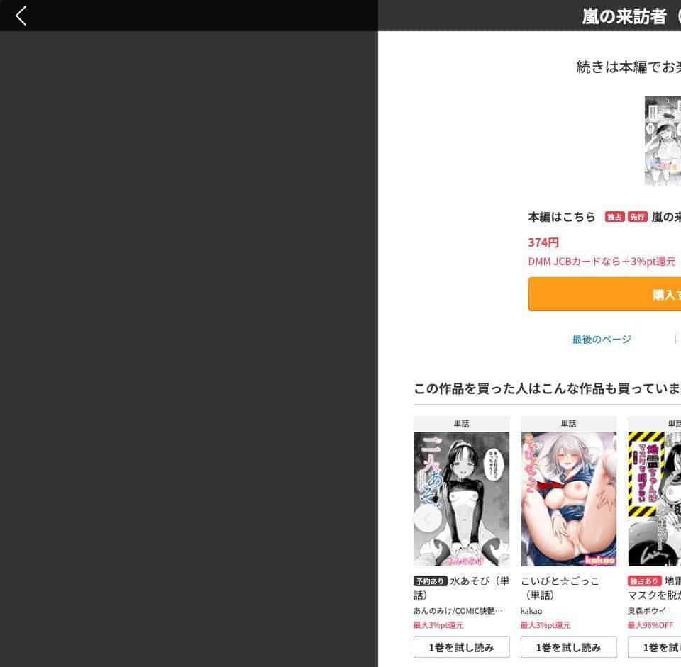 結論:FANZAで間違いなし。「昔はDLsiteの方がモザ薄」なんて声もあったけど、今はほぼ同じ画質。それなら大手でセール頻発&使いやすいFANZAが圧勝!今すぐ無料でエロ漫画を読む。