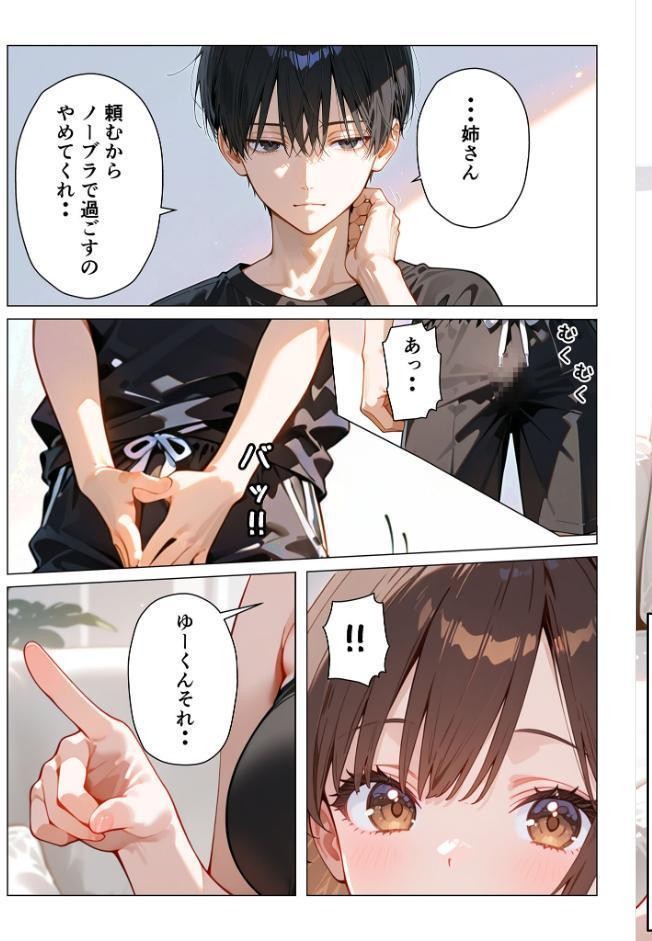 親の再婚で出来た義理の姉『小春』は明るい性格で少しお調子者! 義理の弟『祐介』のことをよくからかって遊ぶ。 ある日、朝起きたらいつものようにノーブラでリビングでくつろぐ小春。 いつも小春のノーブラでうろつく姿にムラムラしていた祐介。 この日はなんとなくこはるにノーブラを注意。 そしたら【お義姉ちゃんのこと、そんな目で見てたの〜?】とからかわれてしまう… そしてまさかのおっぱいを見せてくれるという展…